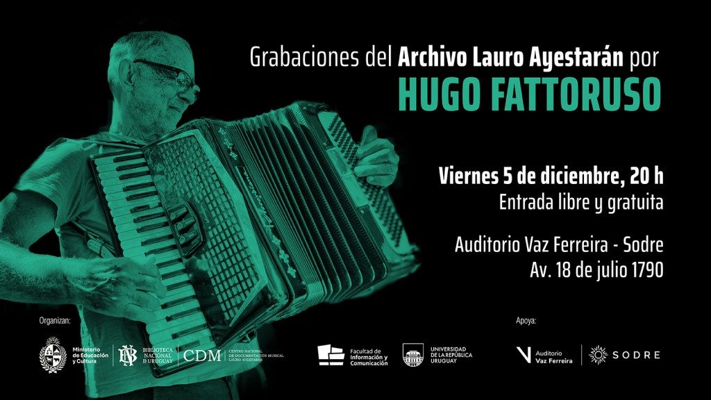 Será el viernes 5 de diciembre a las 20h en el Auditorio Vaz Ferreira / Sodre. Av. 18 de Julio 1790.